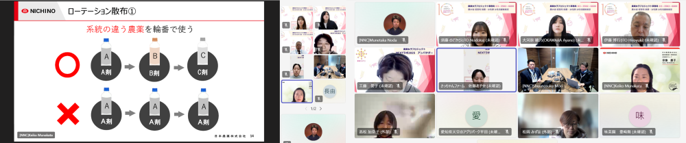 ご参加いただいた皆さまからは、「農薬の使い方、散布方法など動画での説明が分かりやすくよかった。」「前編・後編のセミナーを通して、今までわかっていたことも、確実なものになったと感じた。」といったお声をいただくなど大変好評でした。